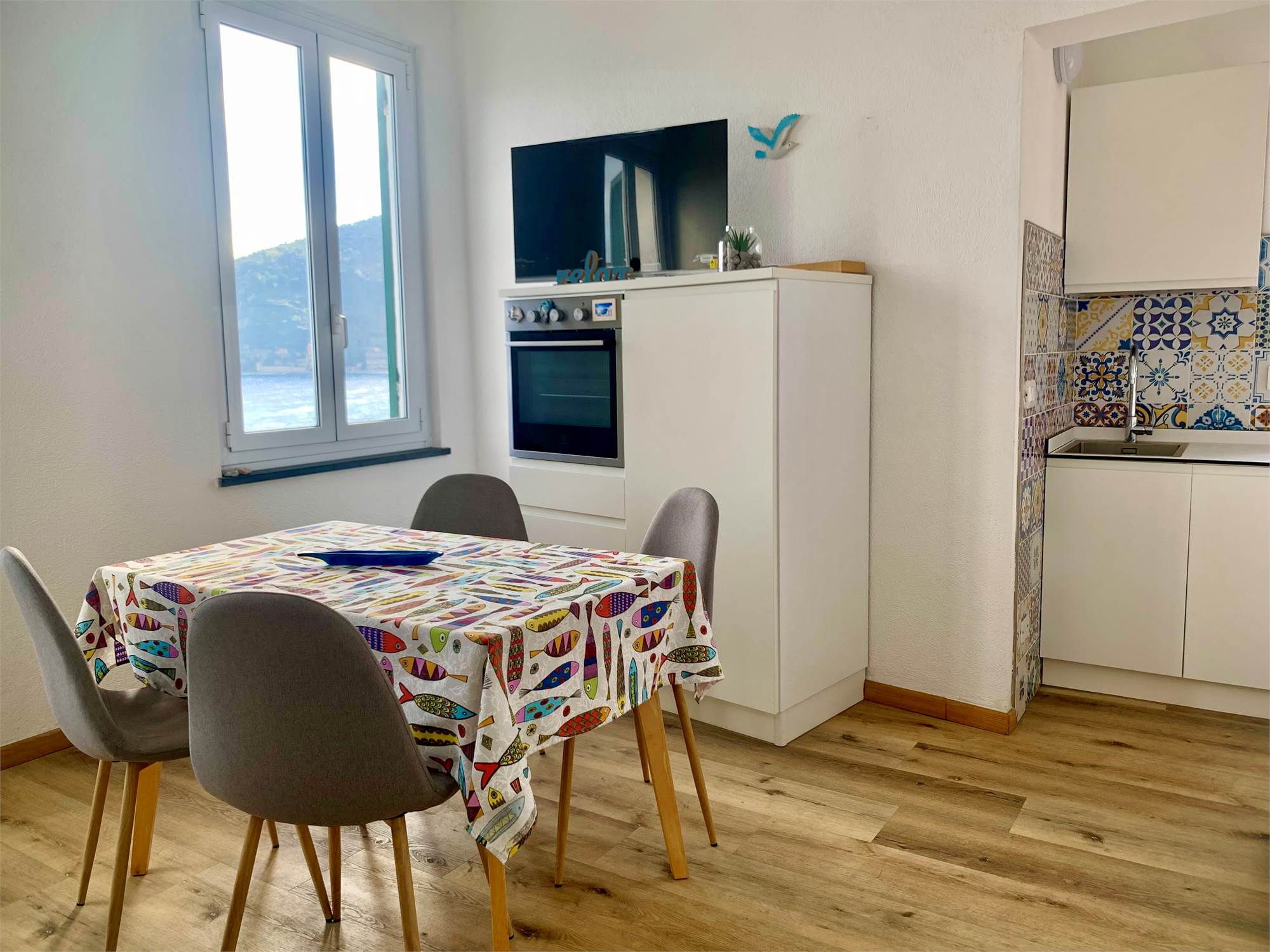 L’appartamento è composto da ingresso, soggiorno con angolo cottura, camera da letto, bagno e balcone con affaccio diretto sul mare, perfetto per godersi momenti di relax con una vista mozzafiato sul Golfo di Noli.